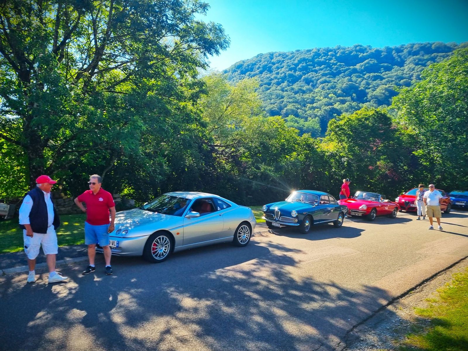 Puis reprise de nos Alfa pour rejoindre notre restaurant situé sur la rive du lac de l’abbaye ! Vue superbe, mets excellents, bons vins ! Un très bon moment de convivialité ! Comme tout a une fin, nous reprenons nos voitures pour rejoindre le site des cascades du Hérisson.